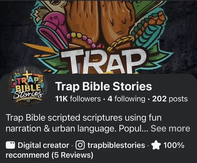 Trap Bible Stories is what it looks like to leave the 99 for the 1. It exists through books, Facebook posts, public speaking, and animated digital content across platforms like Facebook, YouTube, Instagram, Snapchat, and TikTok. I tell the Bible as it is… the same Word, the same truth… just told well… differently.